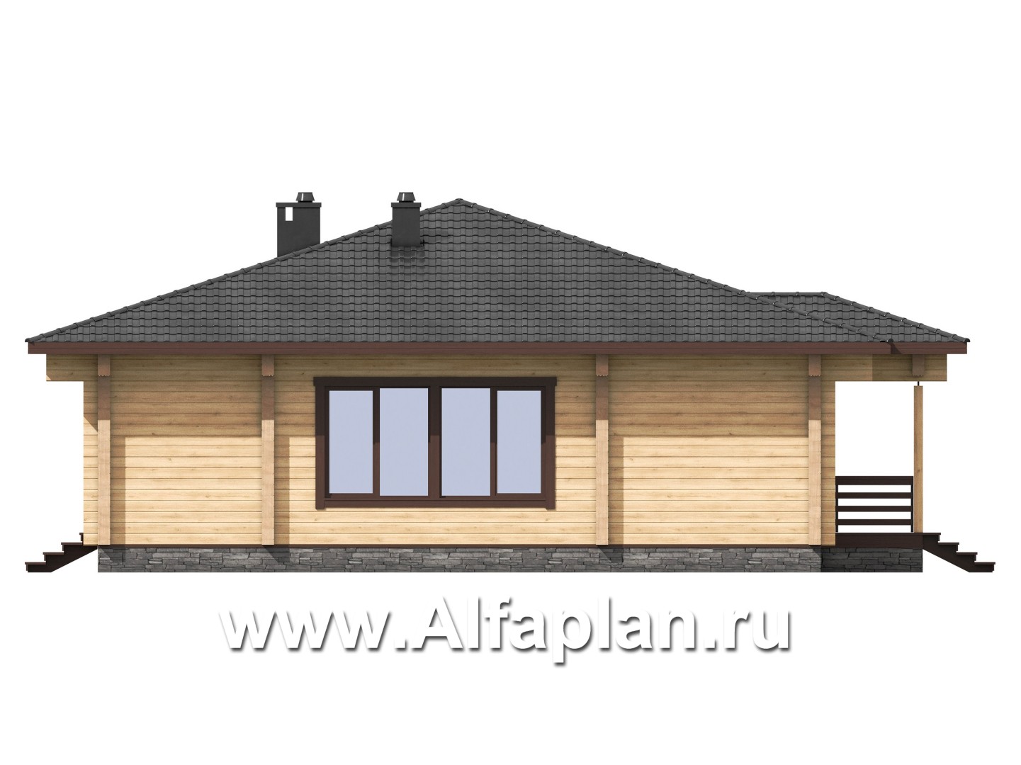 G63 Проект одноэтажного дома из бруса, 3 спальни, дача с террасой, коттедж для отдыха