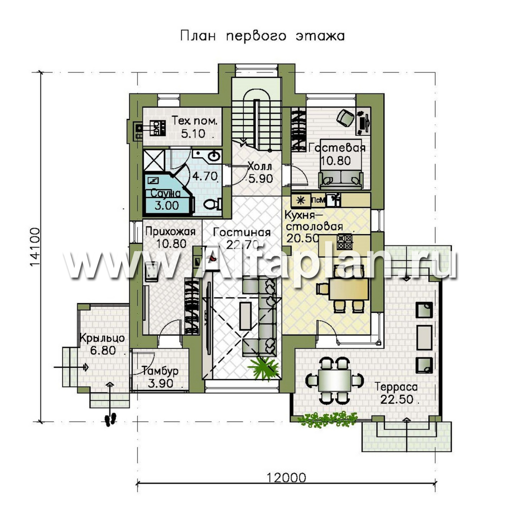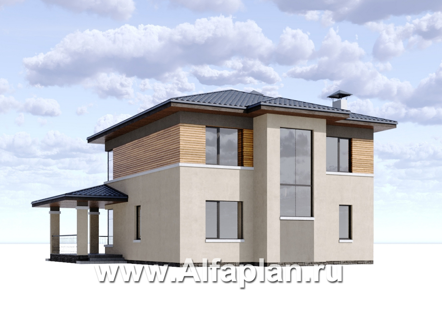 «Монтана» - проект двухэтажного дома из кирпича, со вторым светом и с террасой, в стиле Райта