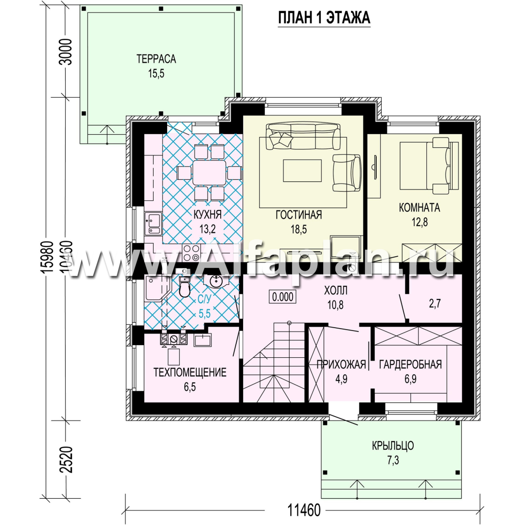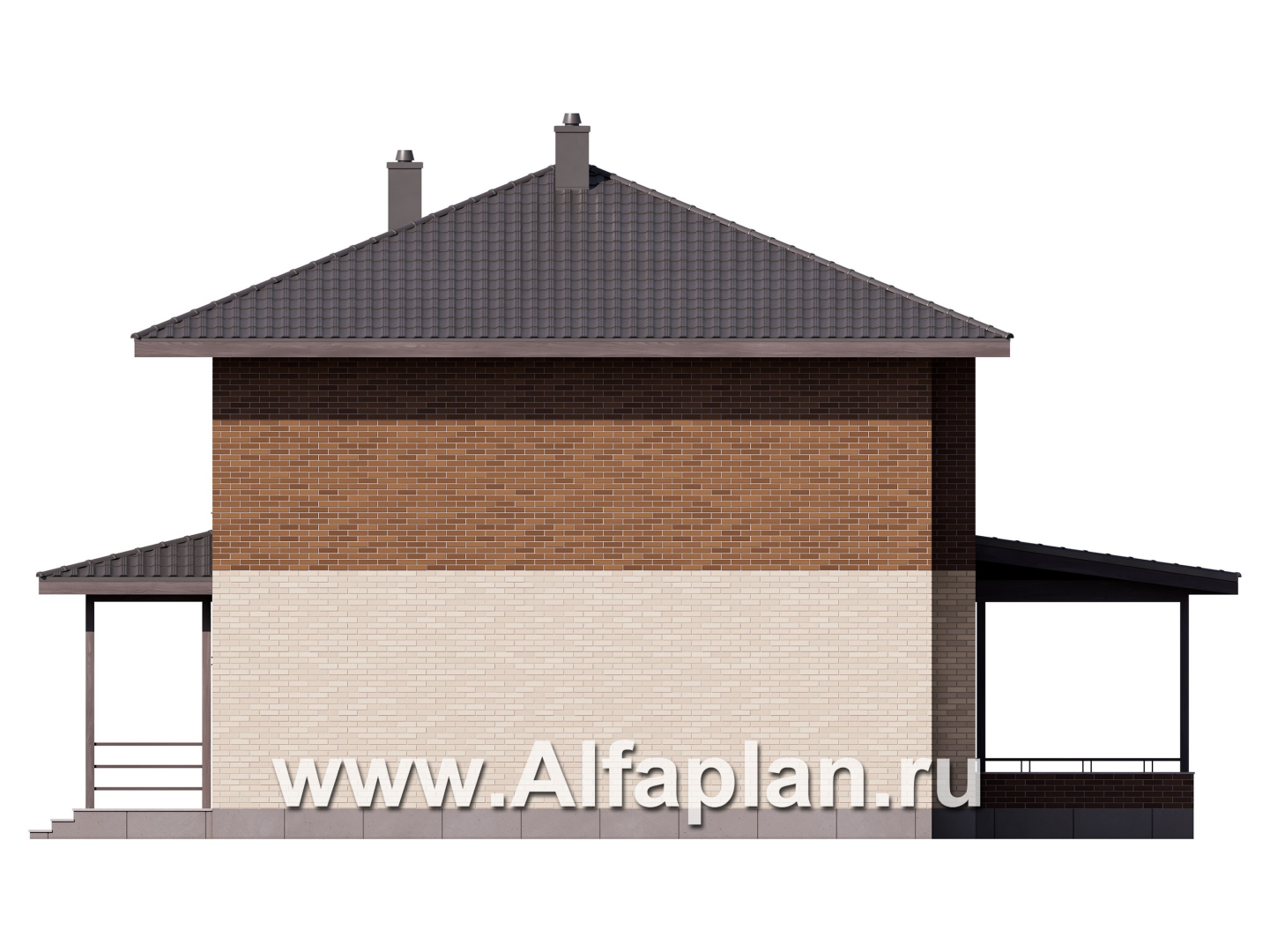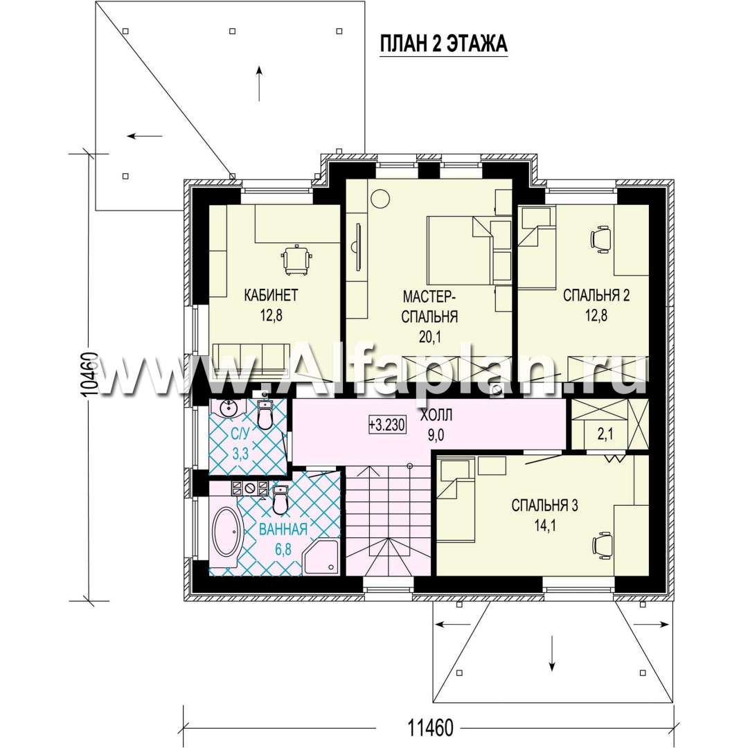 Проект двухэтажного дома из керамических блоков, ланировка в кабинетом на 1 эт, с террасой, в современном стиле