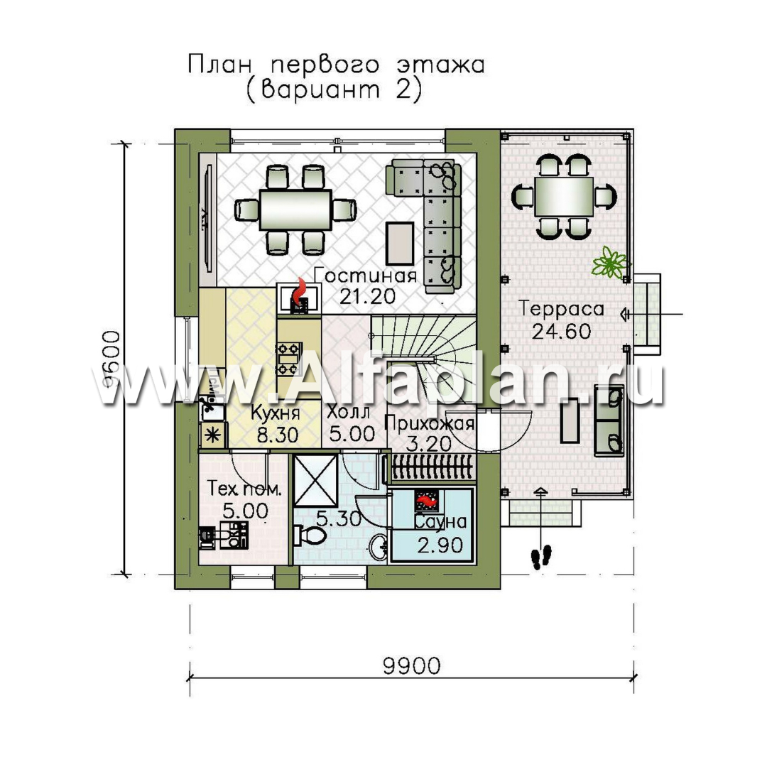 «Викинг» - проект дома, 2 этажа, с сауной и с террасой сбоку, в скандинавском стиле