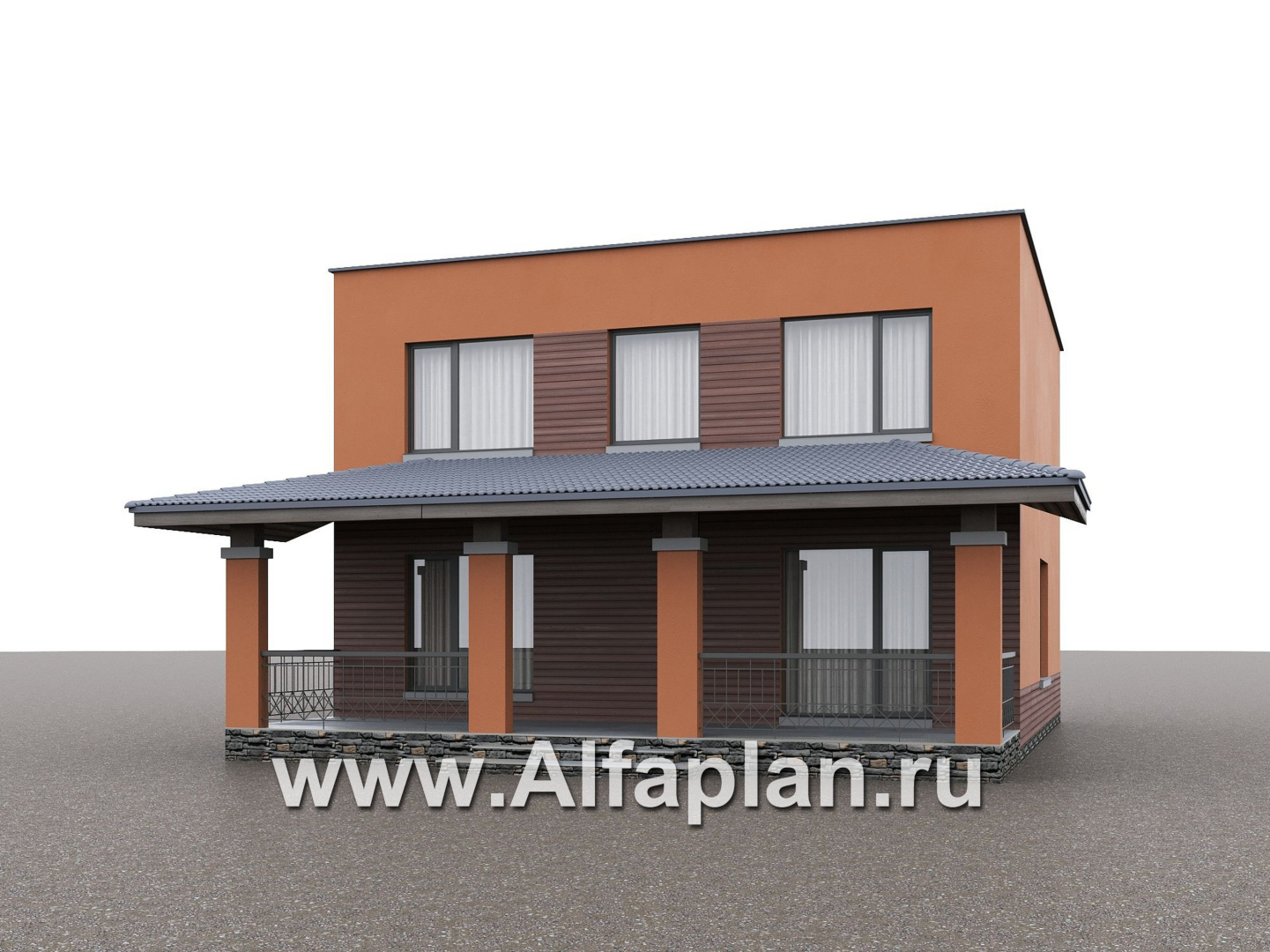 757E «Невада» - проект двухэтажного дома из газобетона, с террасой, навес на 2 авто, с плоской крышей в стиле минимализм