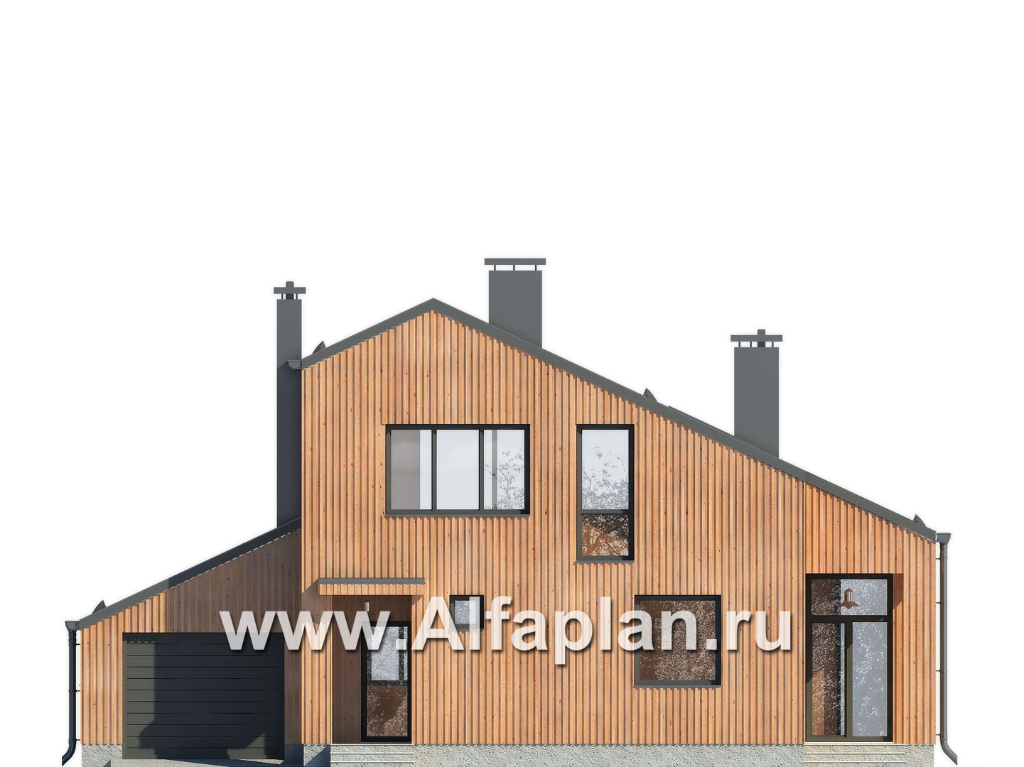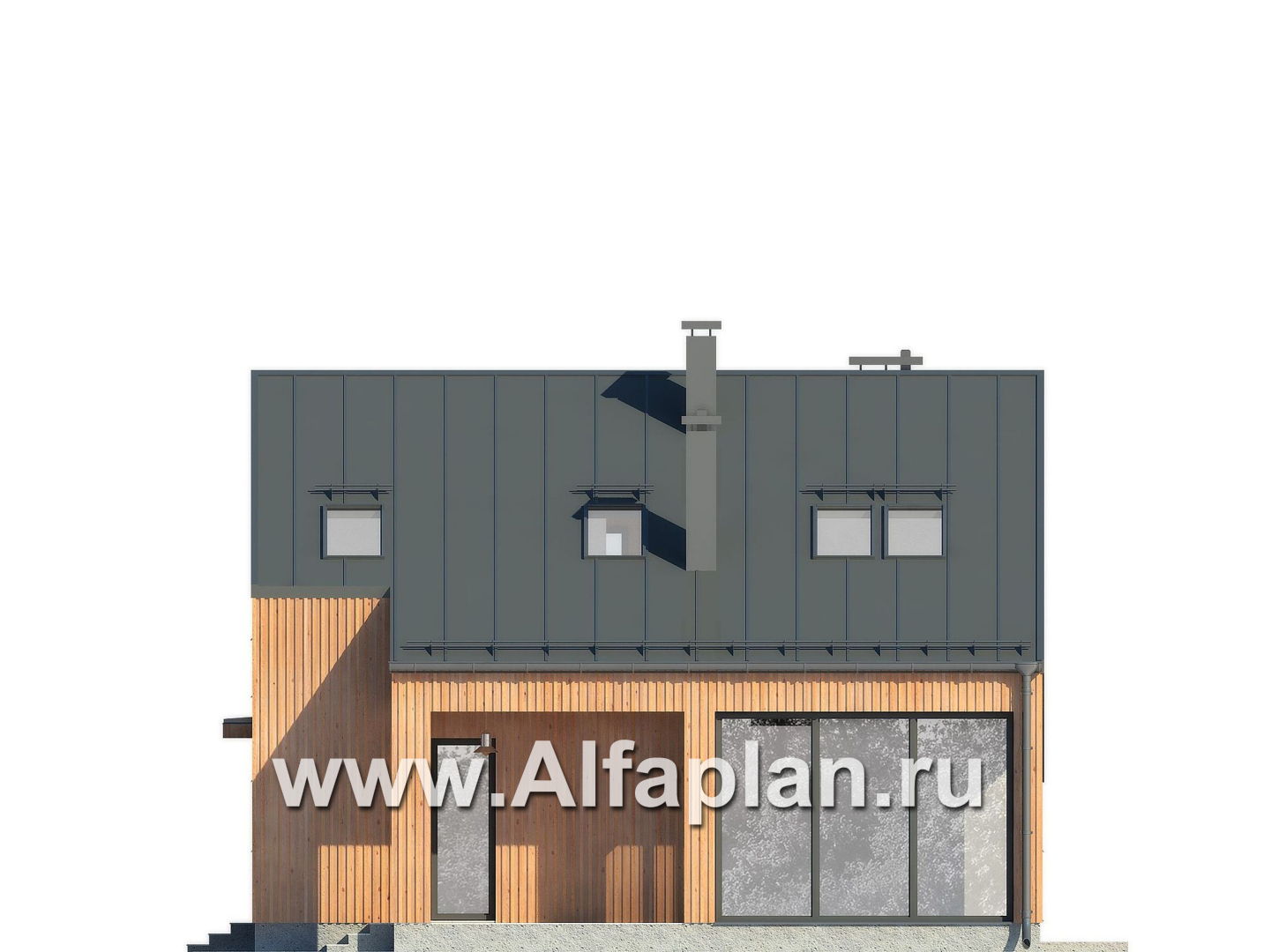 G56a-S Проект дома с мансардой, планировка с кабинетом и с гаражом на 1 авто, в современном стиле