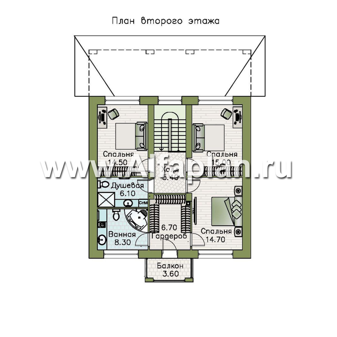 757B-S «Невада» - проект двухэтажного дома из газобетона, с террасой, в стиле Райта