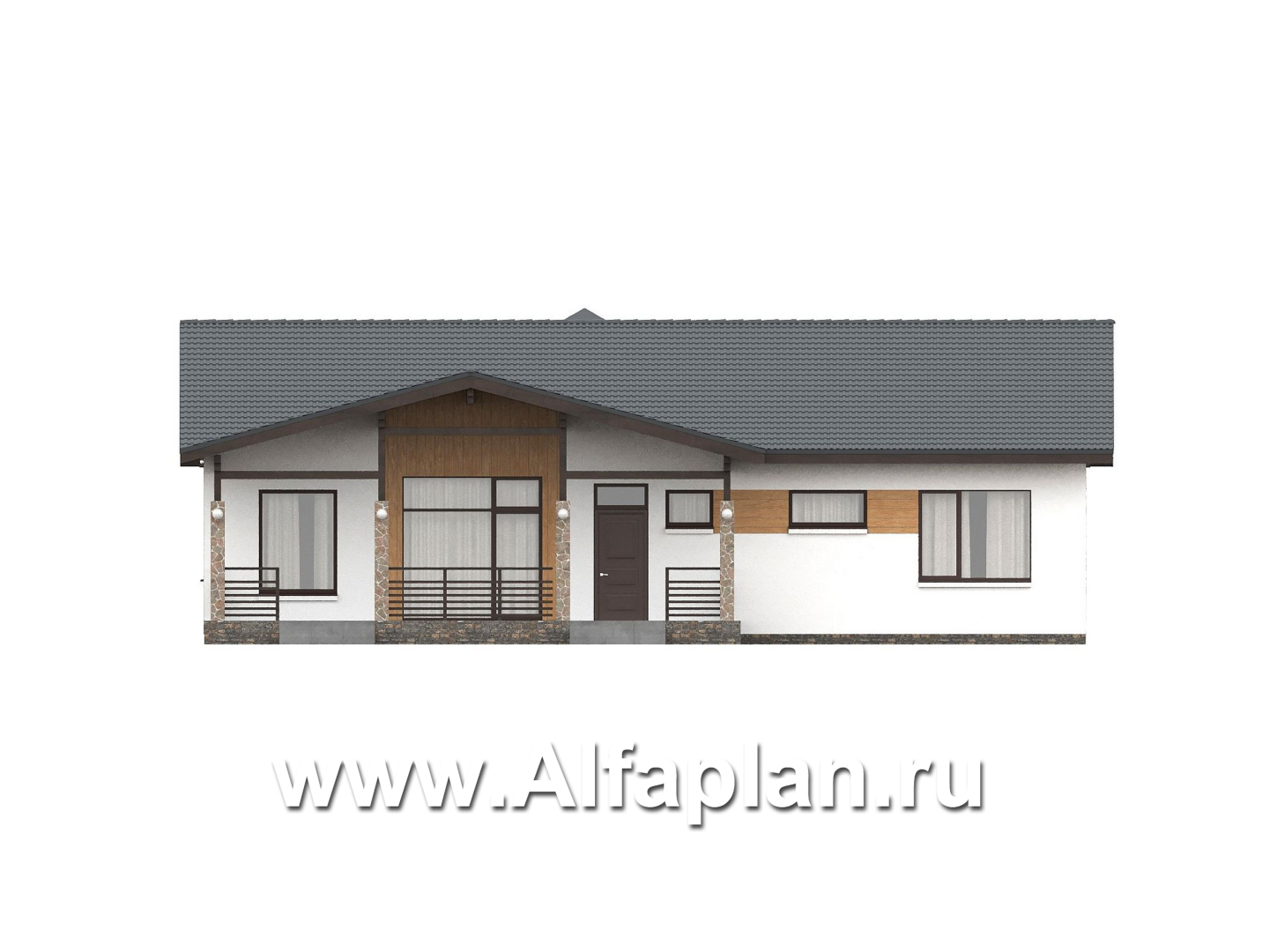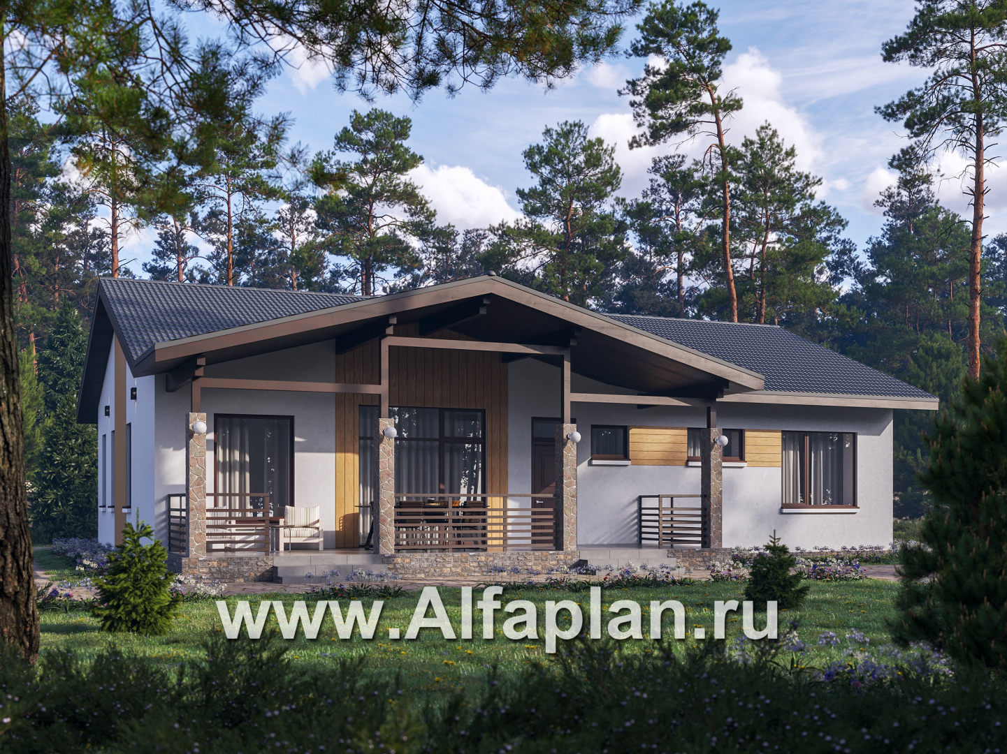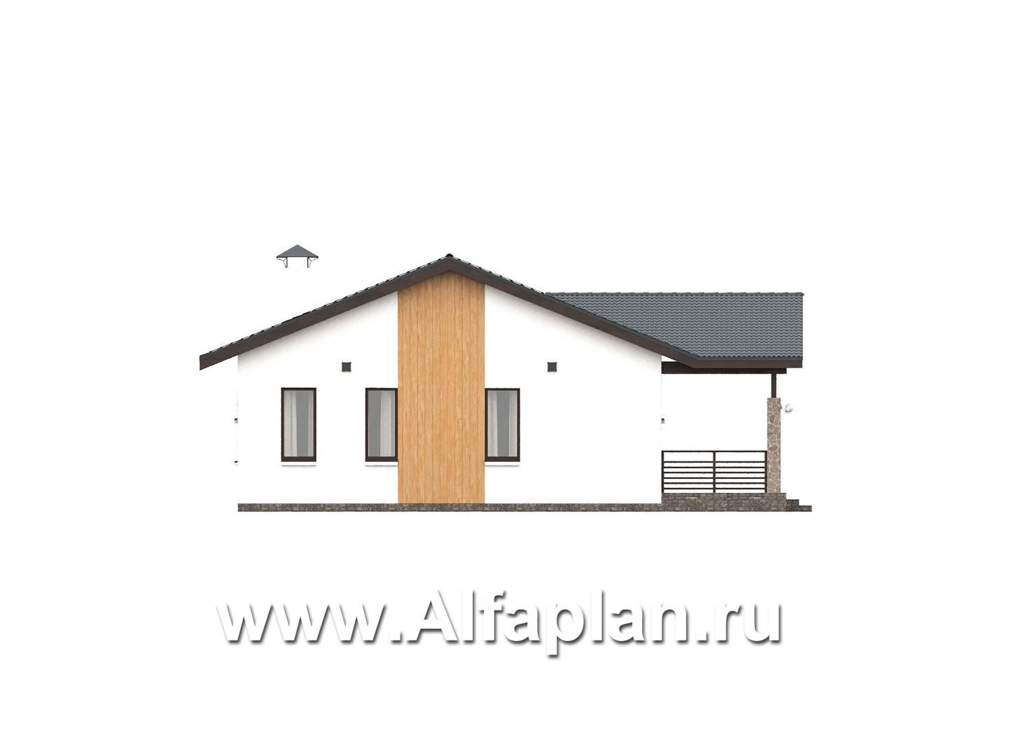 «Золотые поля» - проект одноэтажного дома, планировка мастер спальня и две детских, терраса со стороны входа