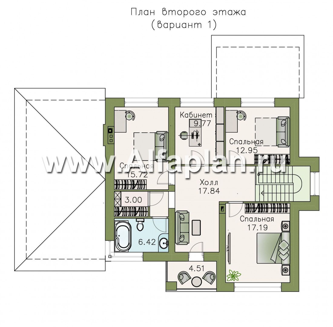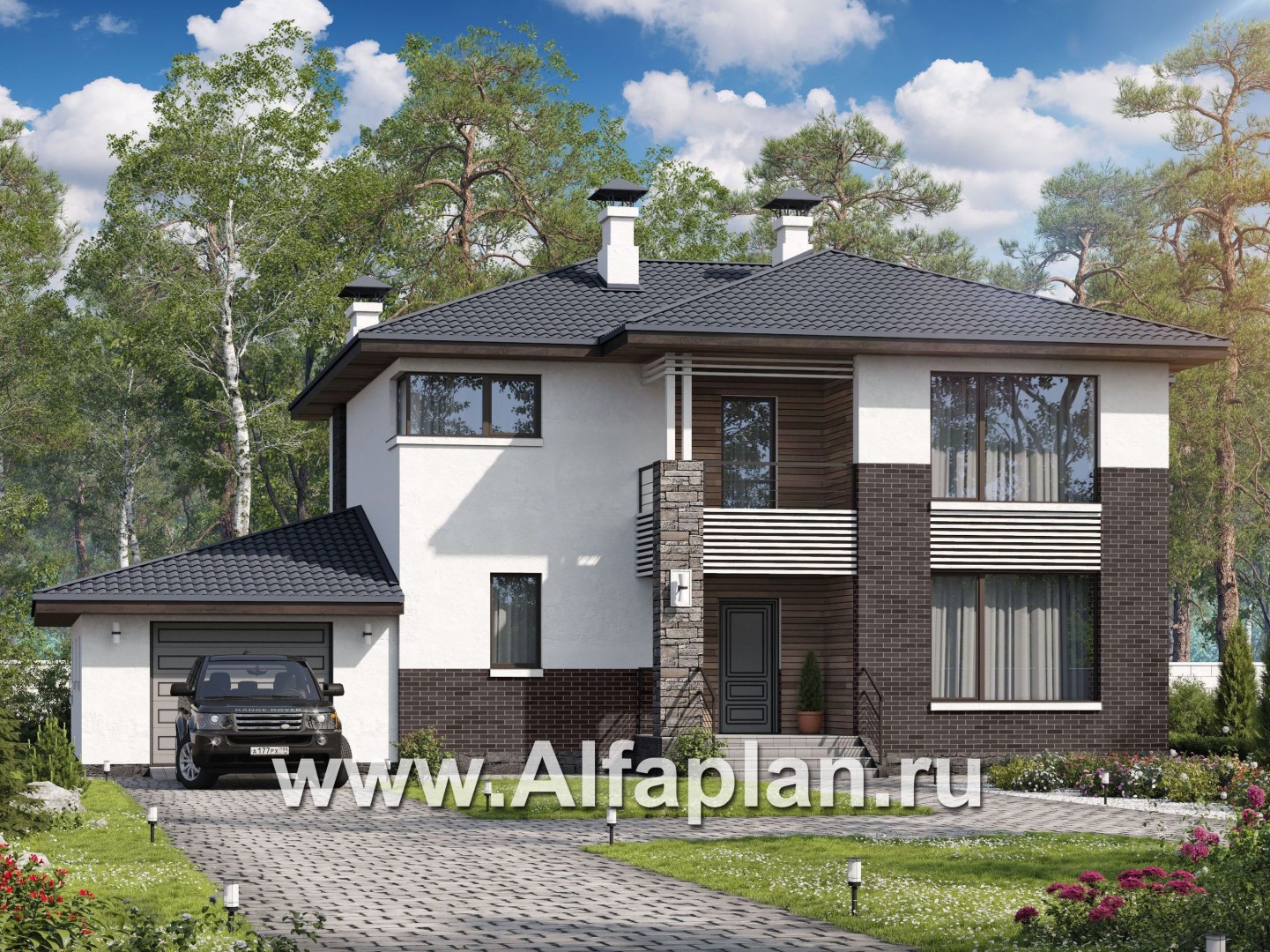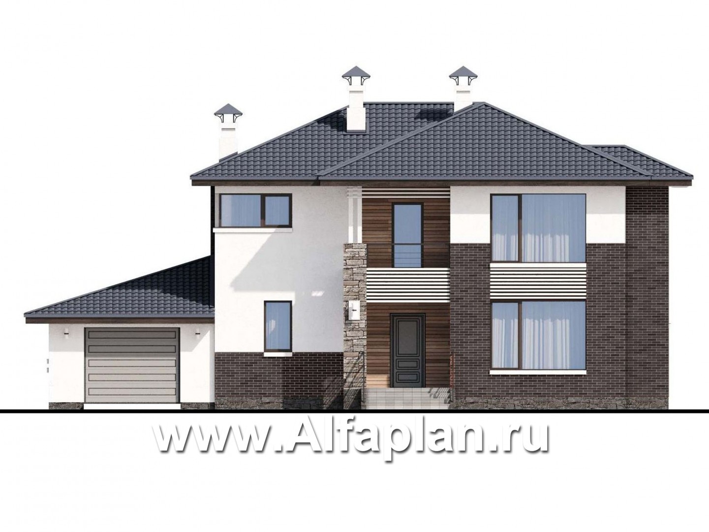 «Страйк» - проект двухэтажного дома с открытой планировкой, мастер спальня, с гаражом на 1 авто