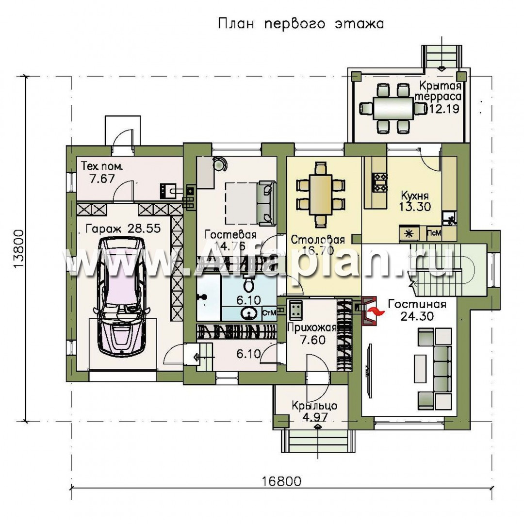 567B «Страйк» - проект двухэтажного дома с открытой планировкой, мастер спальня, с гаражом на 1 авто