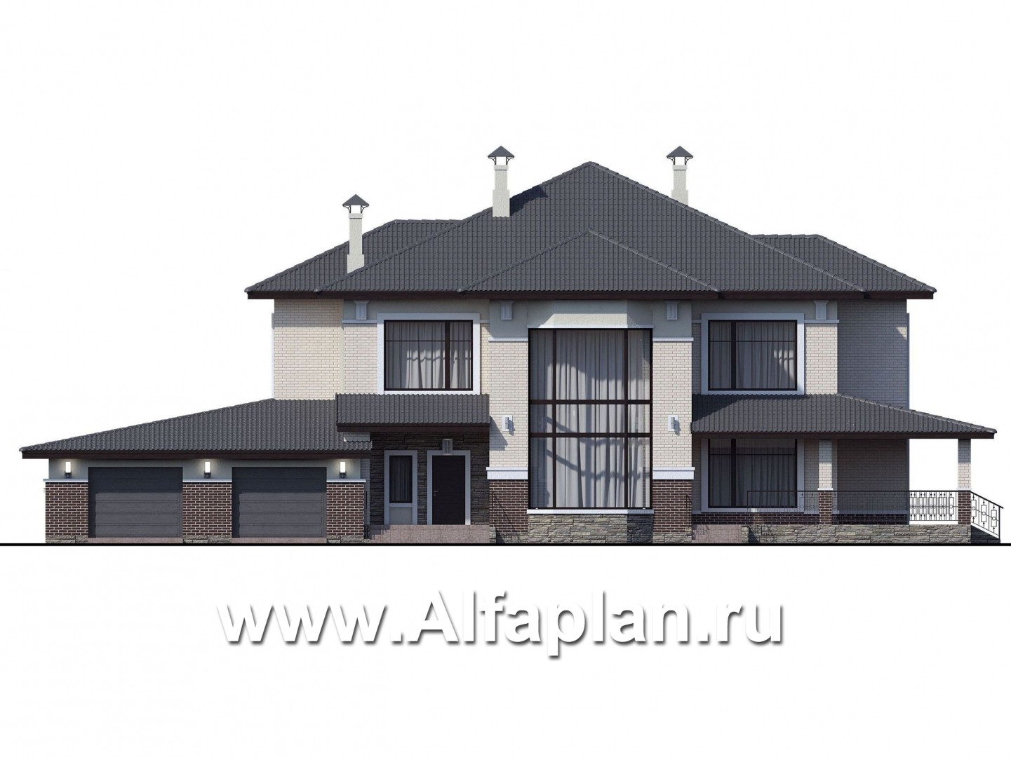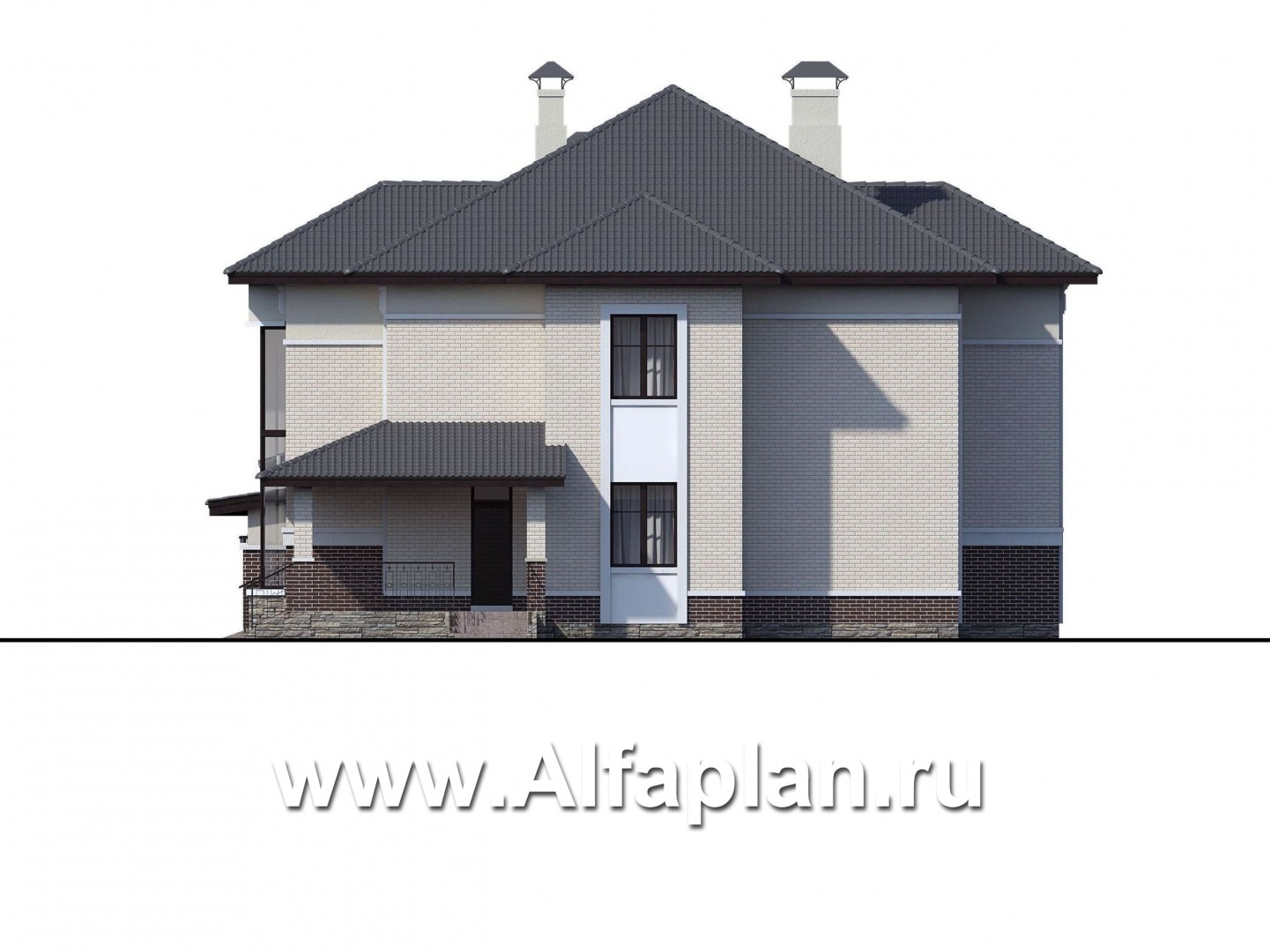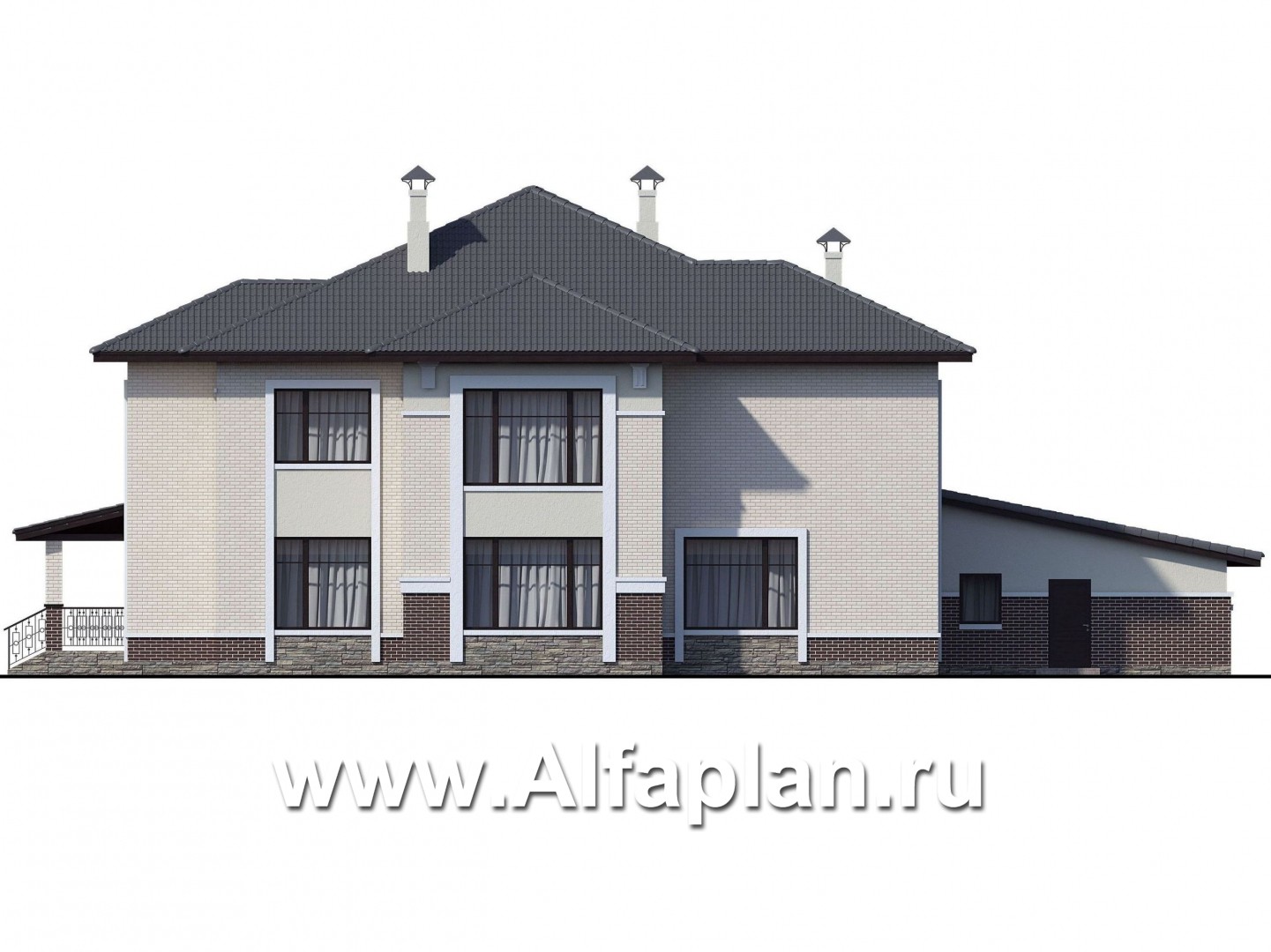 716B-S «Сена» —проект двухэтажного дома, особняк с эркером в двусветной столовой, с террасой и сауной