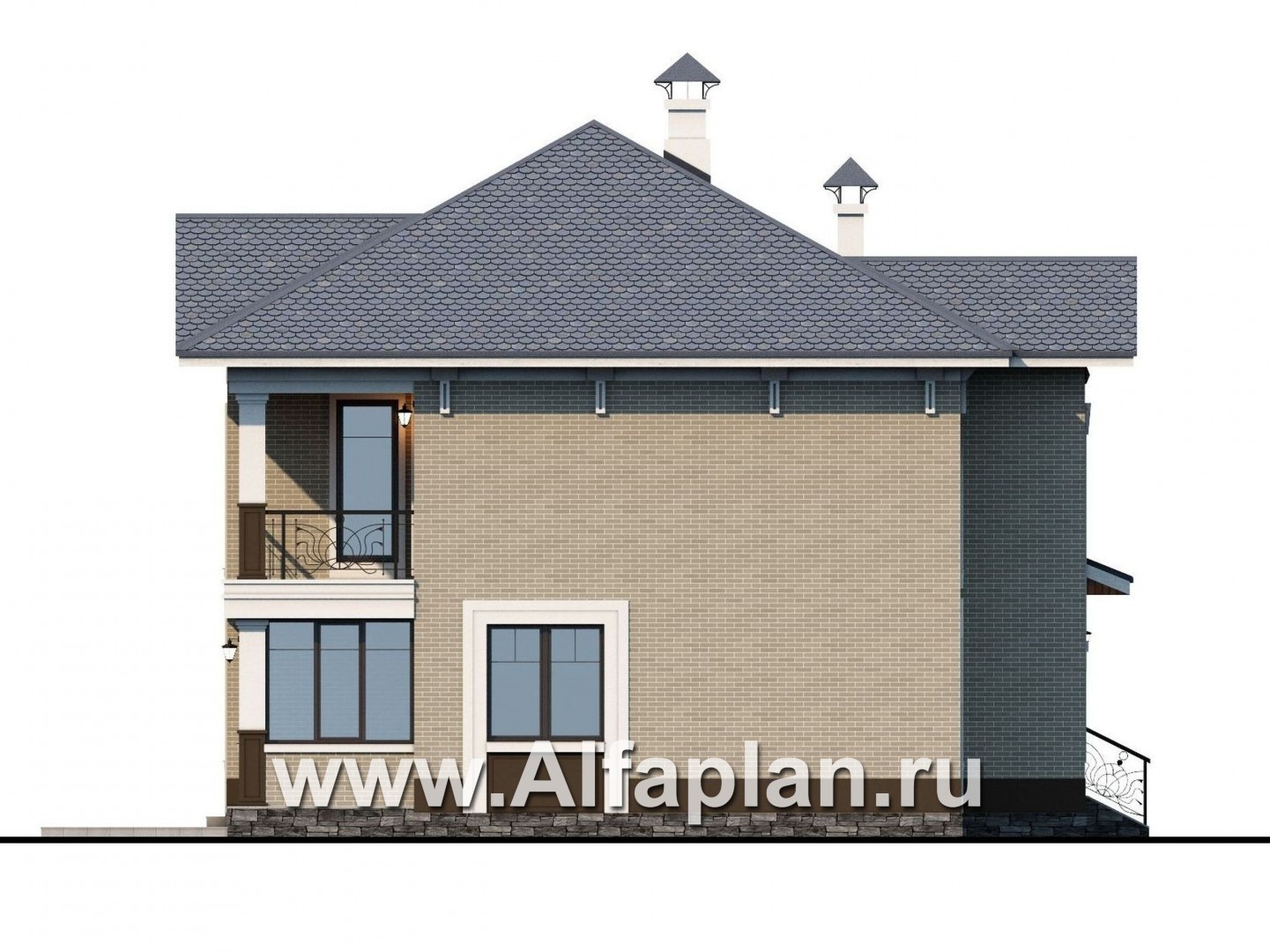 199A-S «Зазеркалье»- проект двухэтажного коттеджа, с террасой и балконом, в стиле модерн