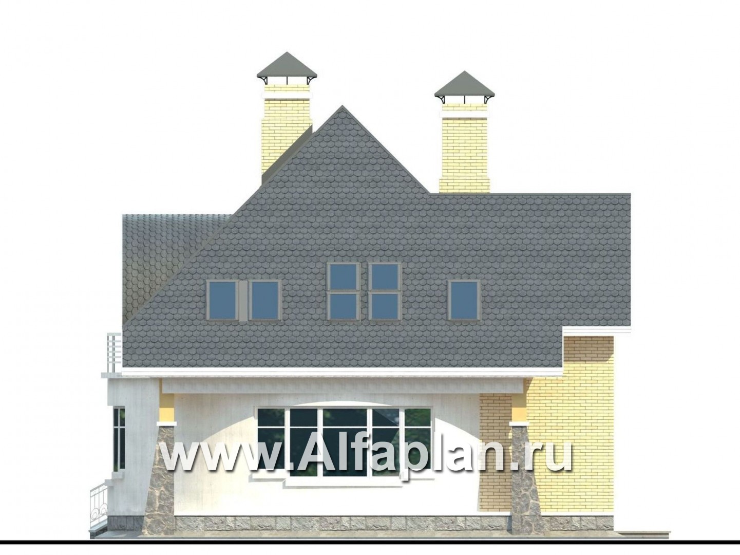 69E-S «Свой остров» - проект дома с мансардой, планировка с полукруглым эркером