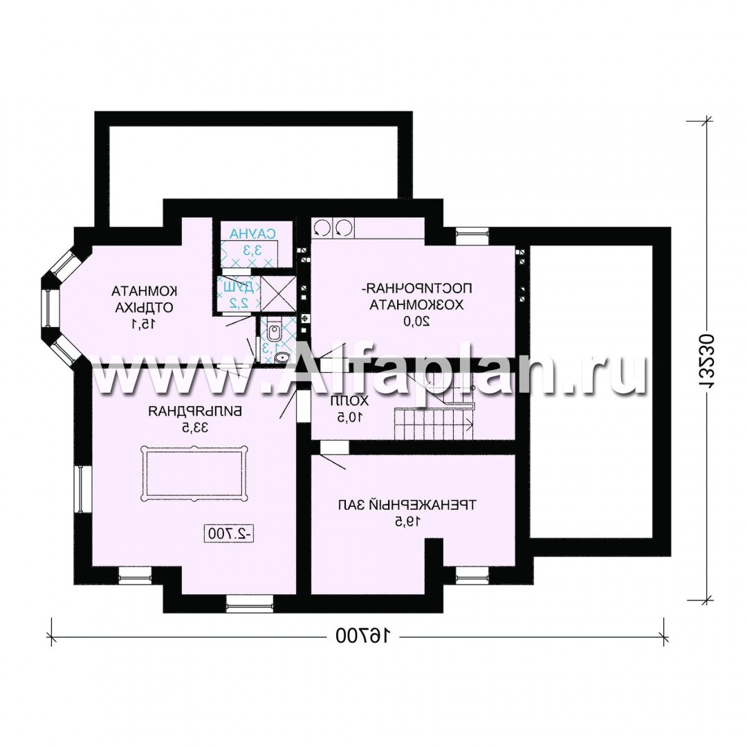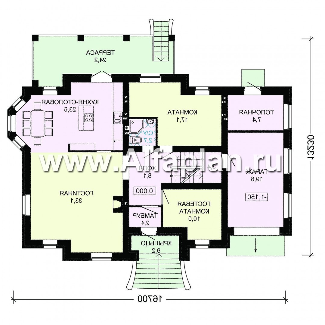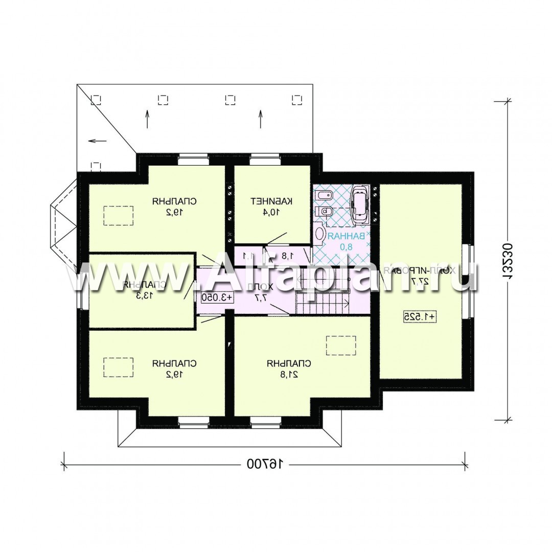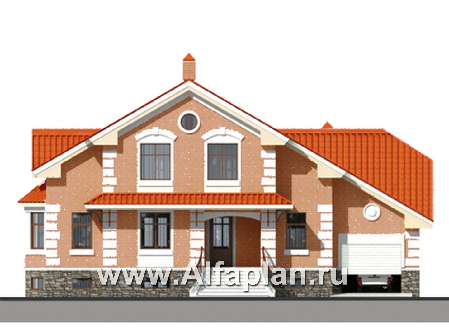 Проект дома с мансардой, план с эркером и с террасой, с гаражом и с цокольным этажом