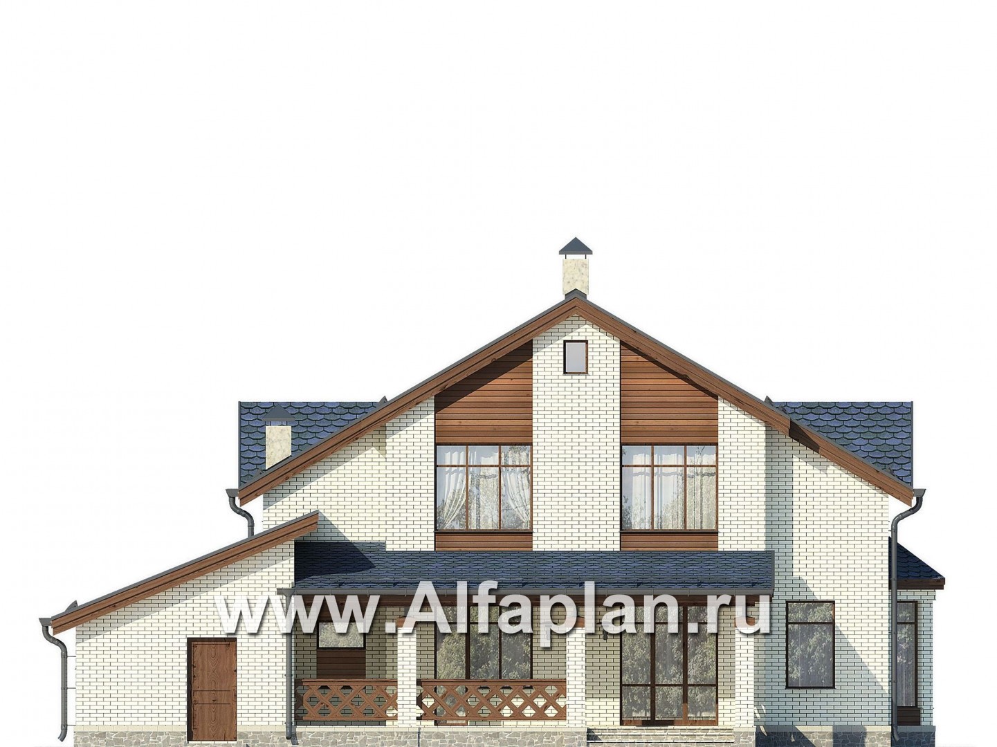 Проект двухэтажного дома из газобетона, планировка с гостевой на 1 эт, с террасой, в современном стиле